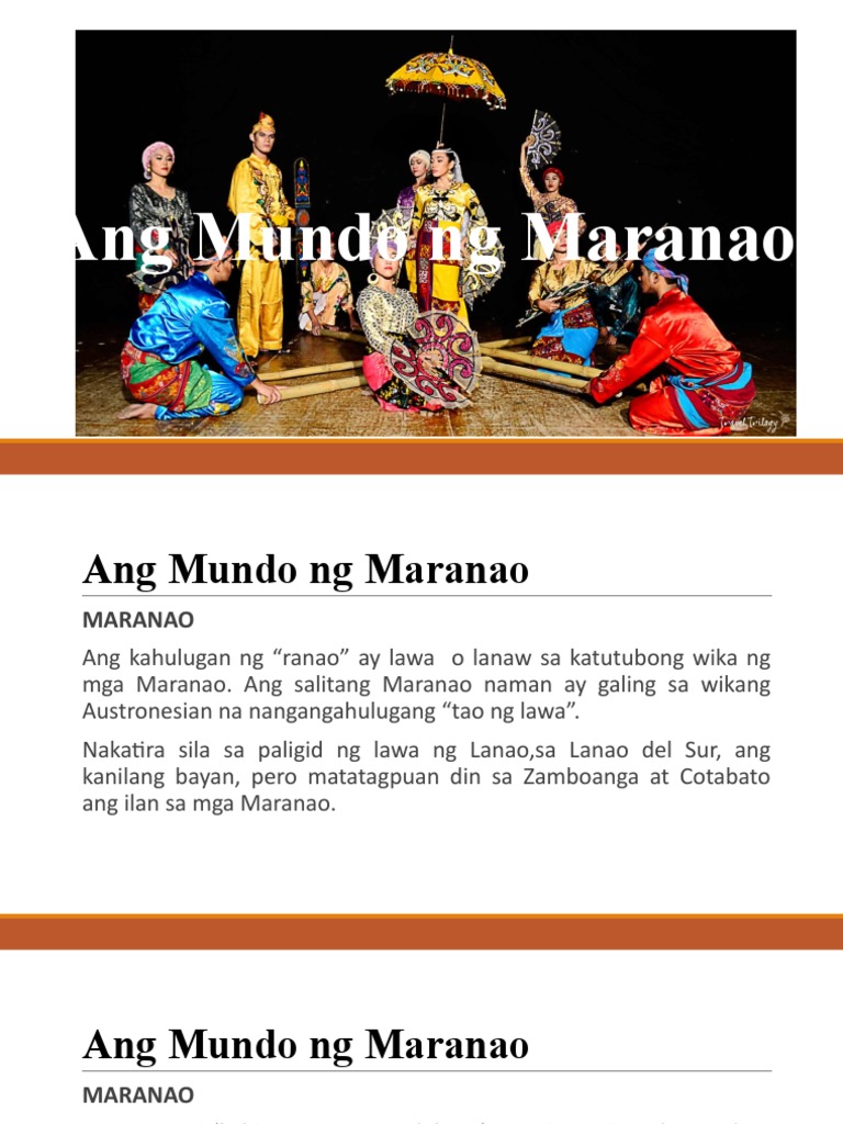 Ang pinakamatangdang The oldest proof of okirs flowering is the torogan the ancestral home of the highest titleholder in a Maranao village. Ang mga Iranun ay naninirahan sa Parang Sultan Kudarat Matanog Buldon Barira Sultan Mastura Alamada at sa syudad ng Cotabato at Pagadian. 12092020 Kwentong bayan ng mga maranao.