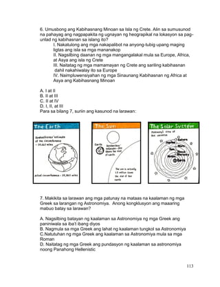 KABIHASNANG MINOAN AT MYCENAEAN 2. Ang tamang sagot ay ang letra b- ang pamimilian II at III. Umusbong ang kabihasnang Minoan sa Isla nga.