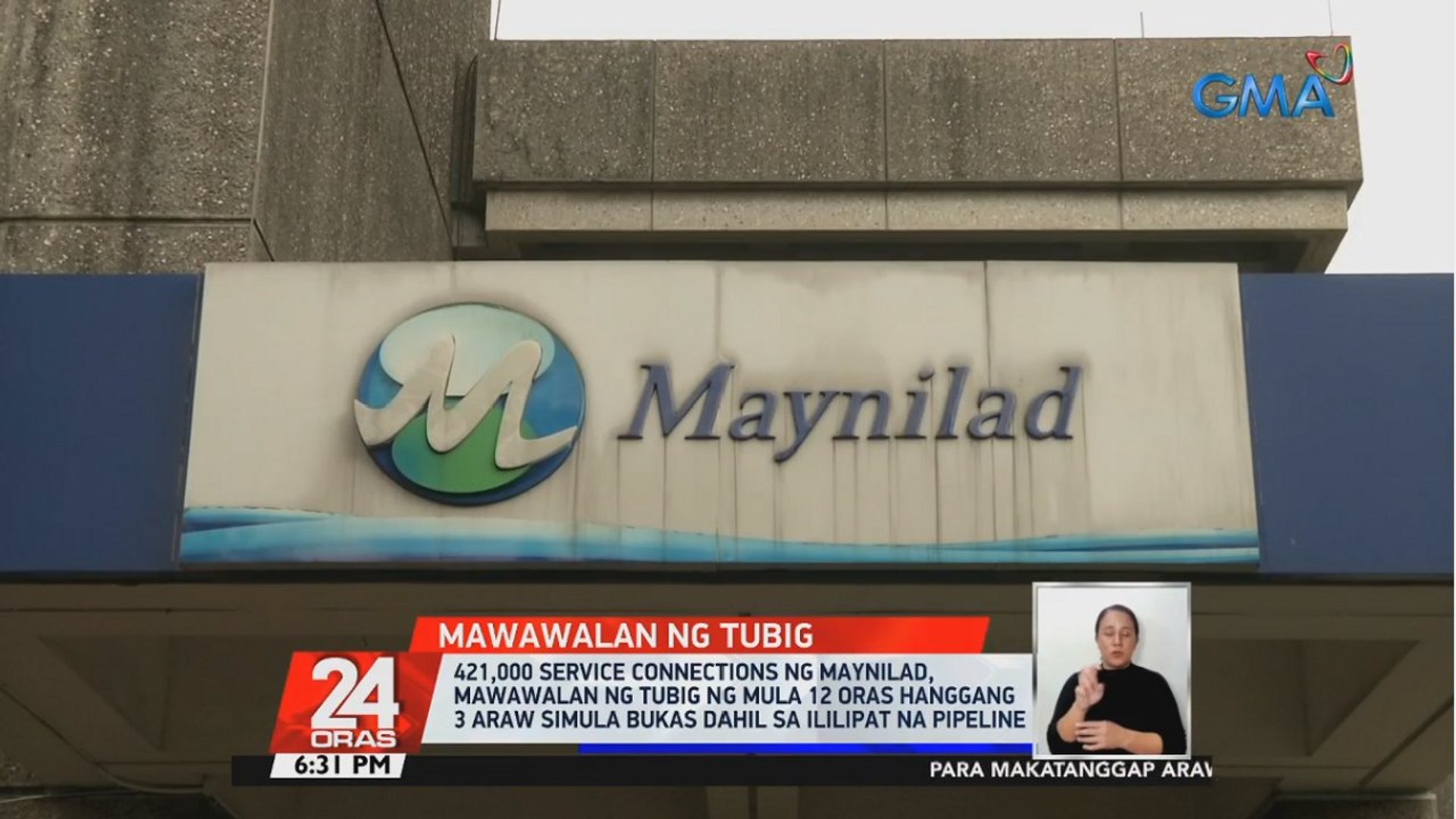 Ayon sa Maynilad magkakaroon ng pagkawala ng tubig sa lugar ng Quezon City at sa mga subdivision ng Valenzuela. Tiniyak na hindi sisingilin sa mga customer ang tumagas na tubig mula sa mga tubong nasa labas ng kanilang bahay 24 Oras.
